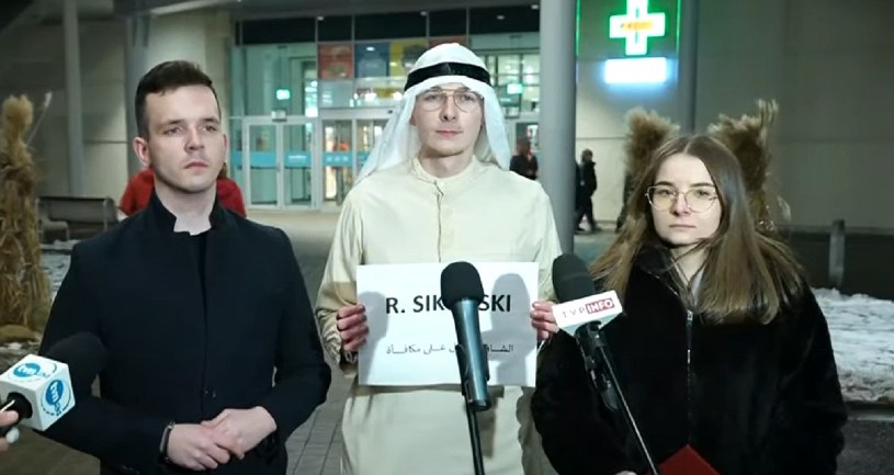 Młodzi działacze Solidarnej Polski zadrwili z Radosława Sikorskiego. Zorganizowali konferencje prasową, na której wystąpił "gość specjalny" z Dubaju. - Ja być Arab z Dubaju....