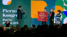 Podczas wystąpienia Szymona Hołowni na kongresie ruchu Polska 2050 na scenę weszli aktywiści klimatyczni z transparentami "Polska bez węgla 2030". - Postulat odejścia od węgla jest...
