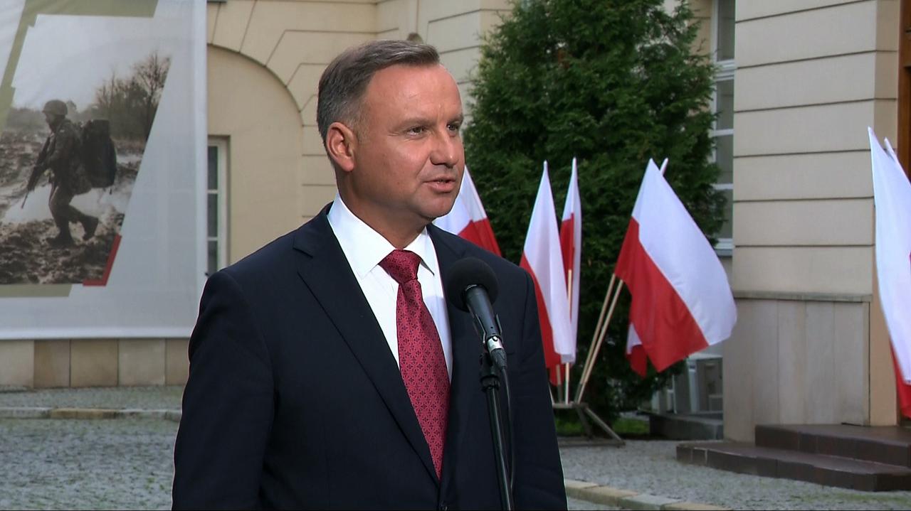Prezydent Andrzej Duda i minister obrony Mariusz Błaszczak udzielają komentarza mediom na temat bieżących spraw bezpieczeństwa państwa. Relacja z konferencji w tvn24.pl....