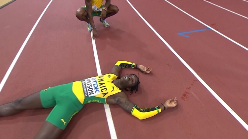 Antonio Watson wyprzedził Matta Hudsona-Smitha na ostatnich kilku metrach i tym samym zdobywa złoto w biegu na 400 m mężczyzn podczas Mistrzostw Świata w lekkoatletyce.